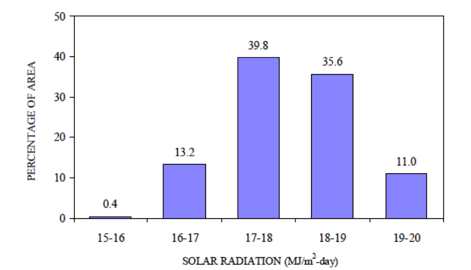 หมายเหตุ : ประเทศไทยเฉลี่ยรังสี 18 MJ/m2-day